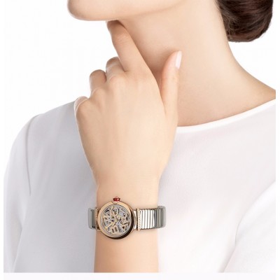 BVLGARI/宝格丽 LVCEA系列 女士镂空BVLGARI徽标圆形切割钻石装饰表盘不锈钢表带机械表腕表手表女表103093