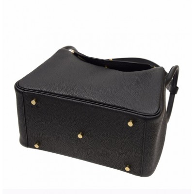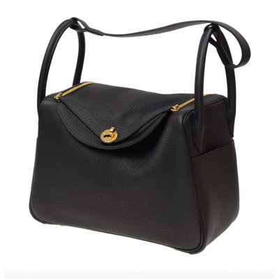 【包邮包税】Hermès 爱马仕 LINDY 30 女士黑色牛皮金扣单肩包
