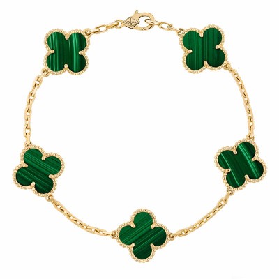 【包邮包税】Van Cleef & Arpels/梵克雅宝 经典款Vintage Alhambra系列 18K金黄金镶嵌孔雀石五花四叶草 手链 VCARL80900