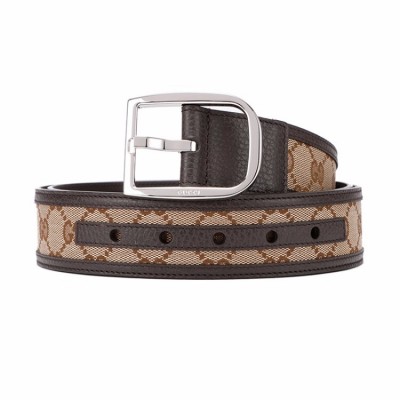 GUCCI/古驰 男士腰带经典 LOGO 压纹 银色针扣 棕色 皮质4cm宽 有细微划痕 防尘袋或品牌礼盒随机配发