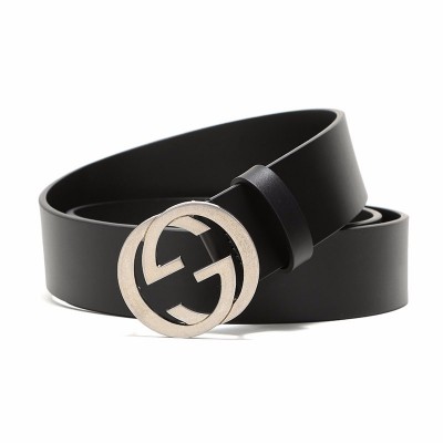 【现货秒发】GUCCI/古驰 男士做旧皮革板扣式 双GG LOGO腰带皮带