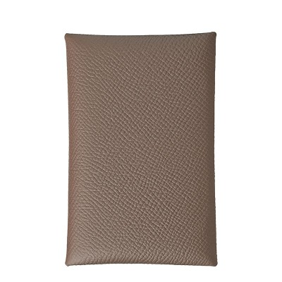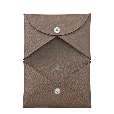 HERMES/爱马仕 Calvi系列 女士大象灰小牛皮银按扣闭合卡片夹H044164CK18